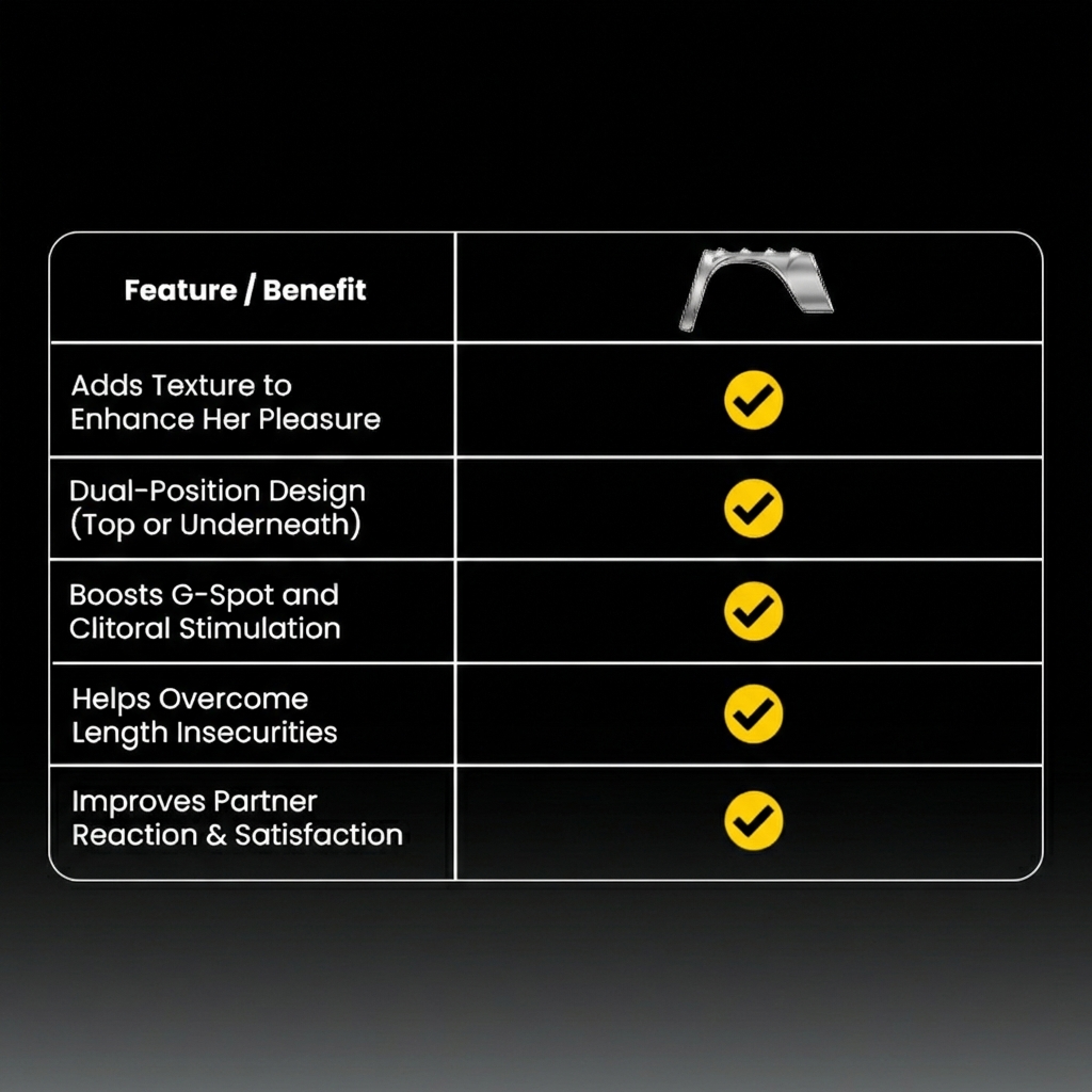 The Dragon is a dual-textured performance ring built for men who are firm… but feel they lack in length. Designed to intensify her with every stroke, its raised ridges create constant internal stimulation, so your partner feels more, even if you aren’t going deeper. Wear it on top or underneath the shaft. The ribbed design adds extra friction against her most sensitive zones, including the G-spot and clitoris, increasing partner satisfaction without changing your size. Soft, stretchable, and easy to wear, The Dragon turns every thrust into a more intense experience for her.